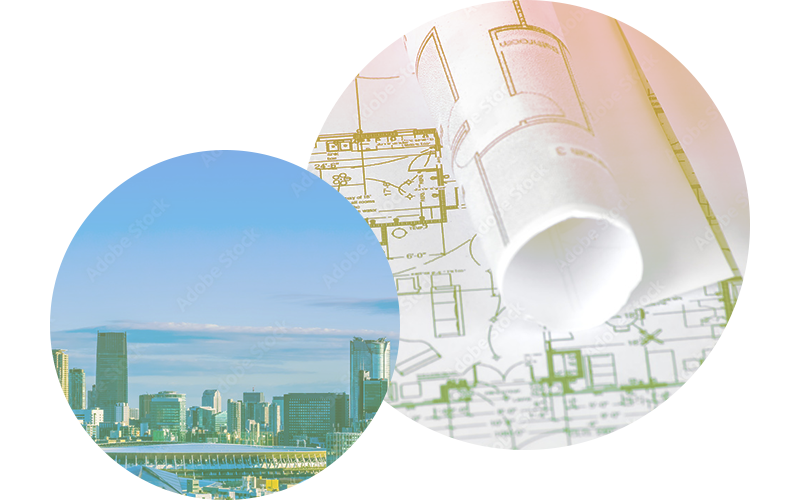 ビルや商業施設、工場、倉庫、公共施設などの大規模建築物を中心に、一般住宅にも対応し、施工図作成を軸として仮設一式から竣工図、材料の発注業務まで幅広く行なっています。